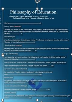 الموضوعات : تاریخ و ماهیت رشته فلسفهٔ تعلیموتربیت، مکاتب و رویکردهای فلسفهٔ تعلیموتربیت قدیم و جدید ،تاریخ اندیشه و عمل تربیتی (سیاستها، برنامهها، اقدامات و...) مفاهیم، گزارهها و نظریههای تربیتی آراء مربیان و فیلسوفان تربیتی روششناسی پژوهشهای تربیتی انواع تربیت مسائل تعلیموتربیت ایران و جهان برنامه درسی و آموزش در رشتههای گوناگون